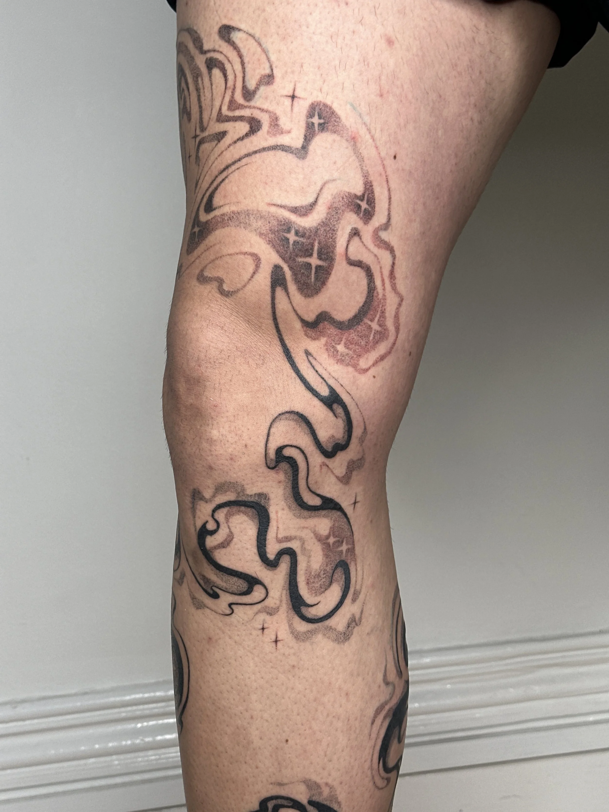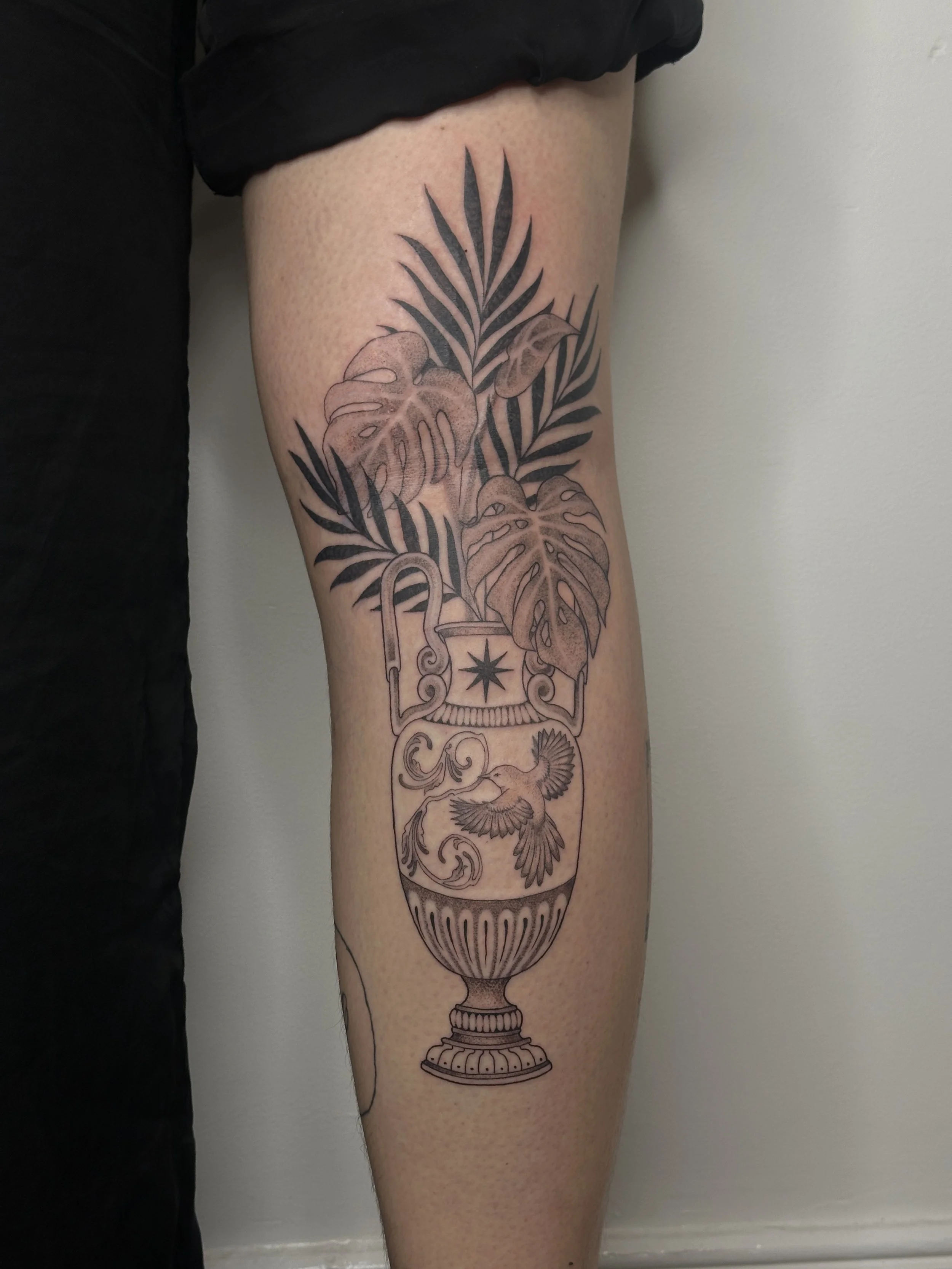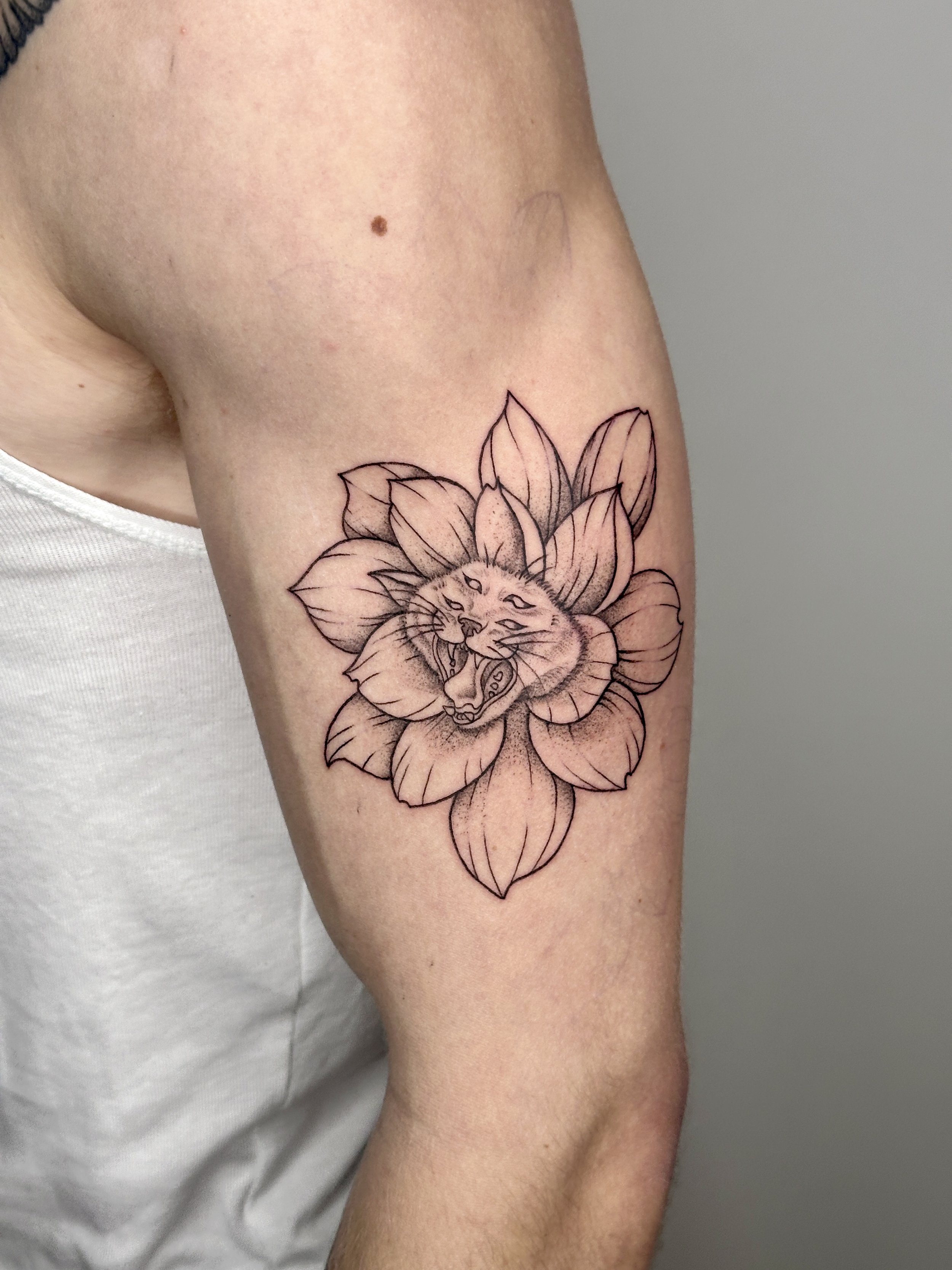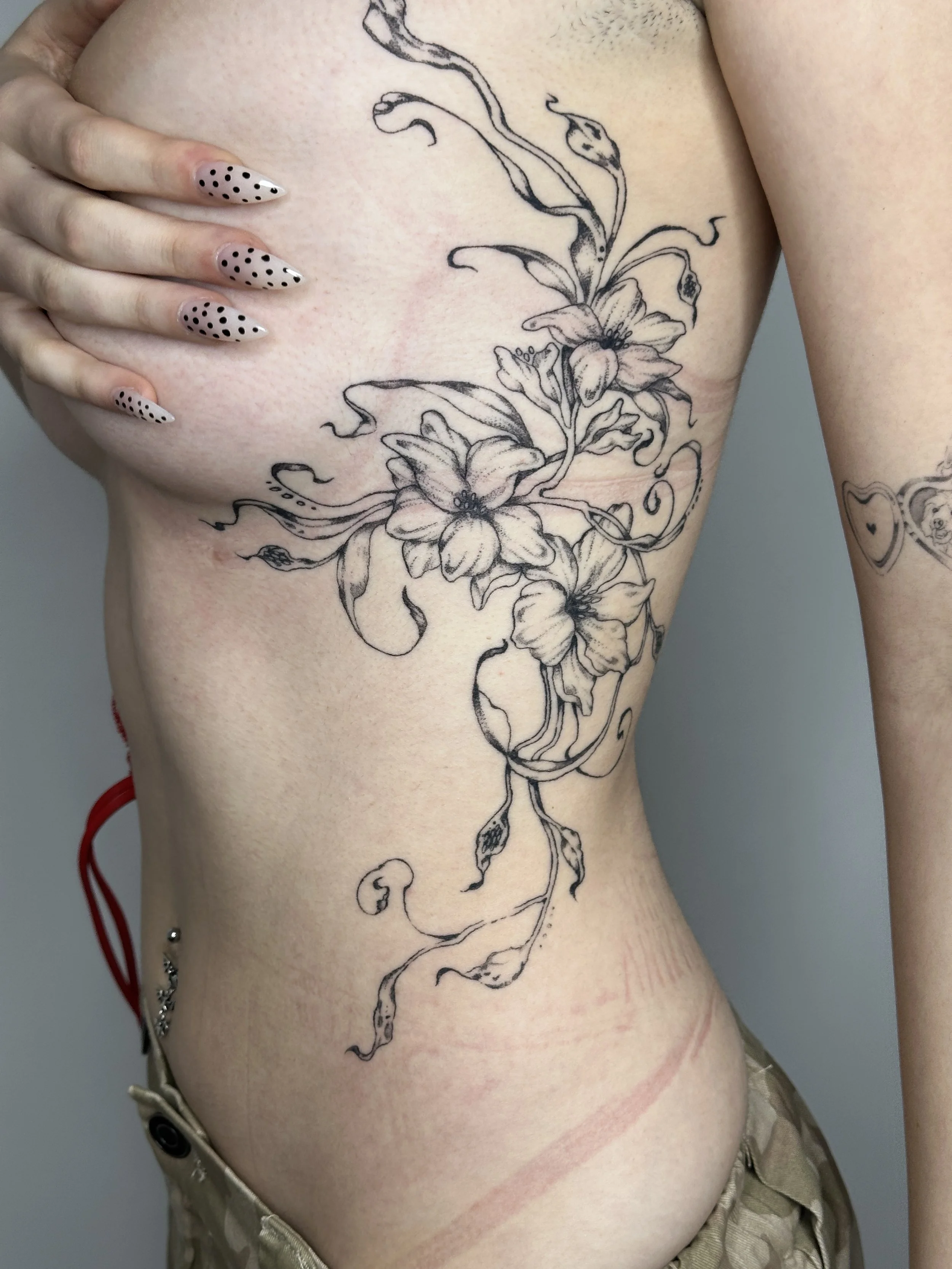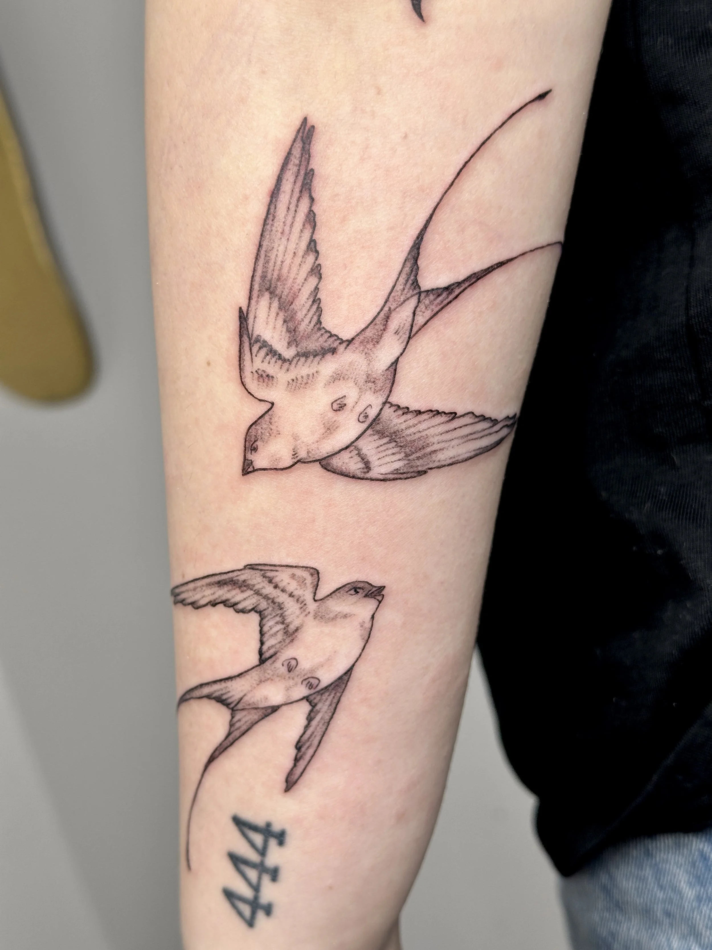 She specialises in fineline, illustrative, and blackwork tattoos, offering everything from one-of-a-kind custom pieces to flash designs she’s lovingly obsessed over. She’s especially drawn to big dreamy abstracts, quirky or badass animal pieces, botanical beauties, and anything delicate and detailed enough to make you lean in for a closer look.