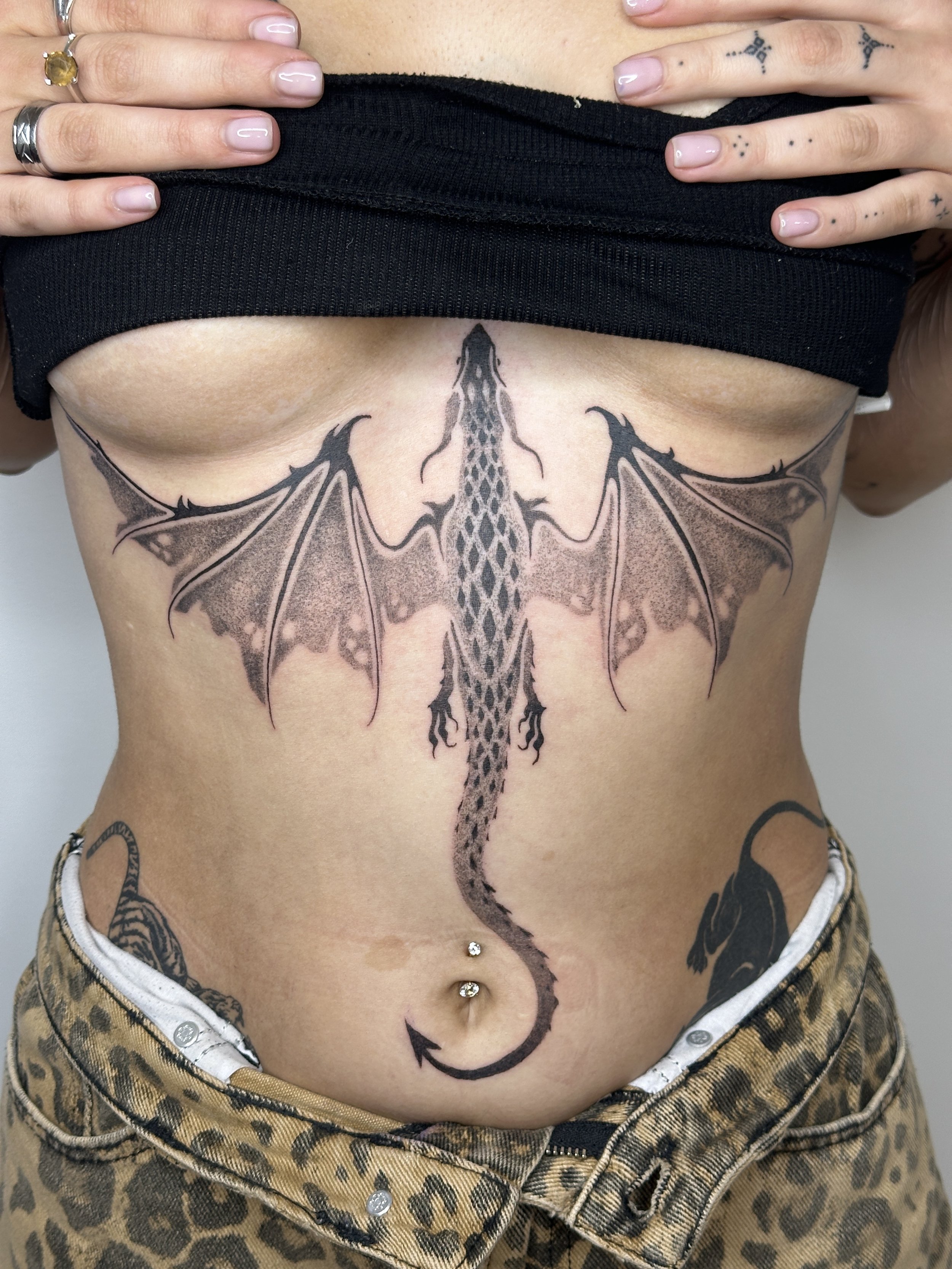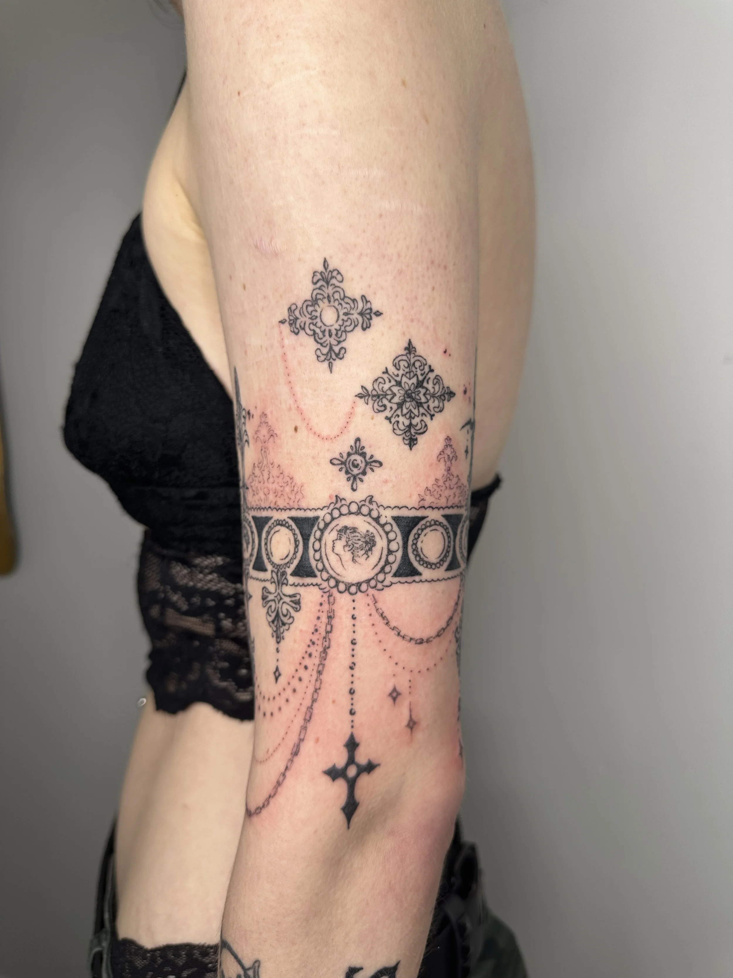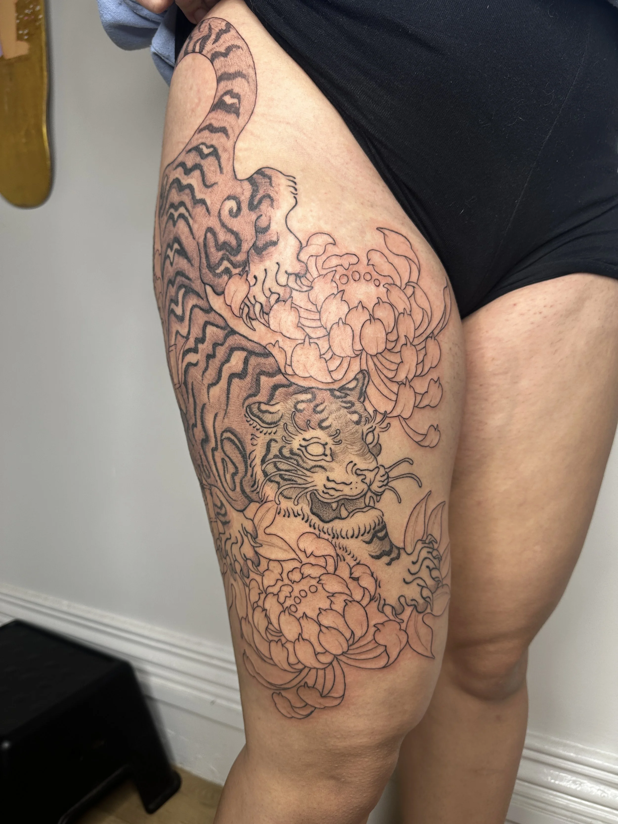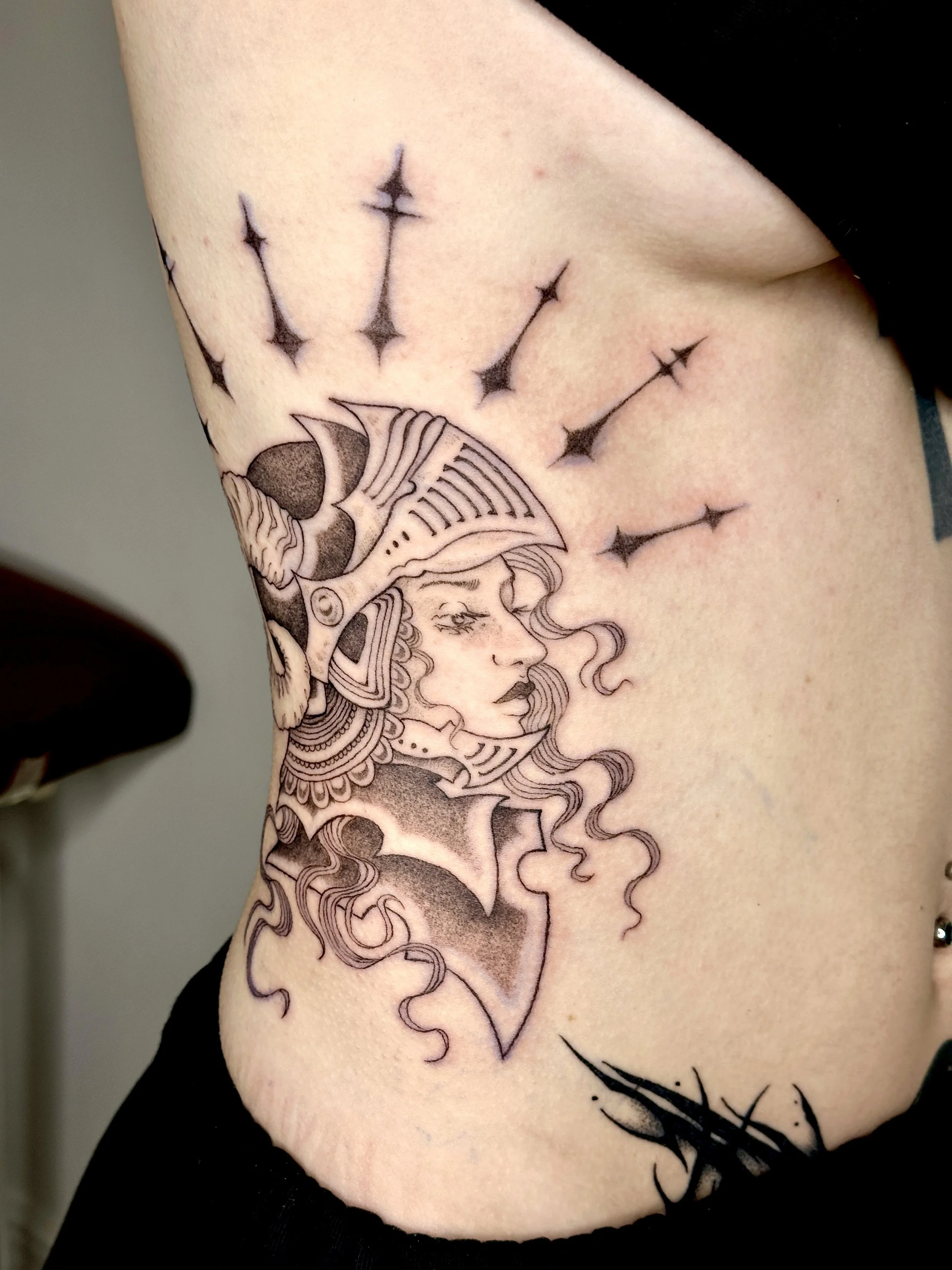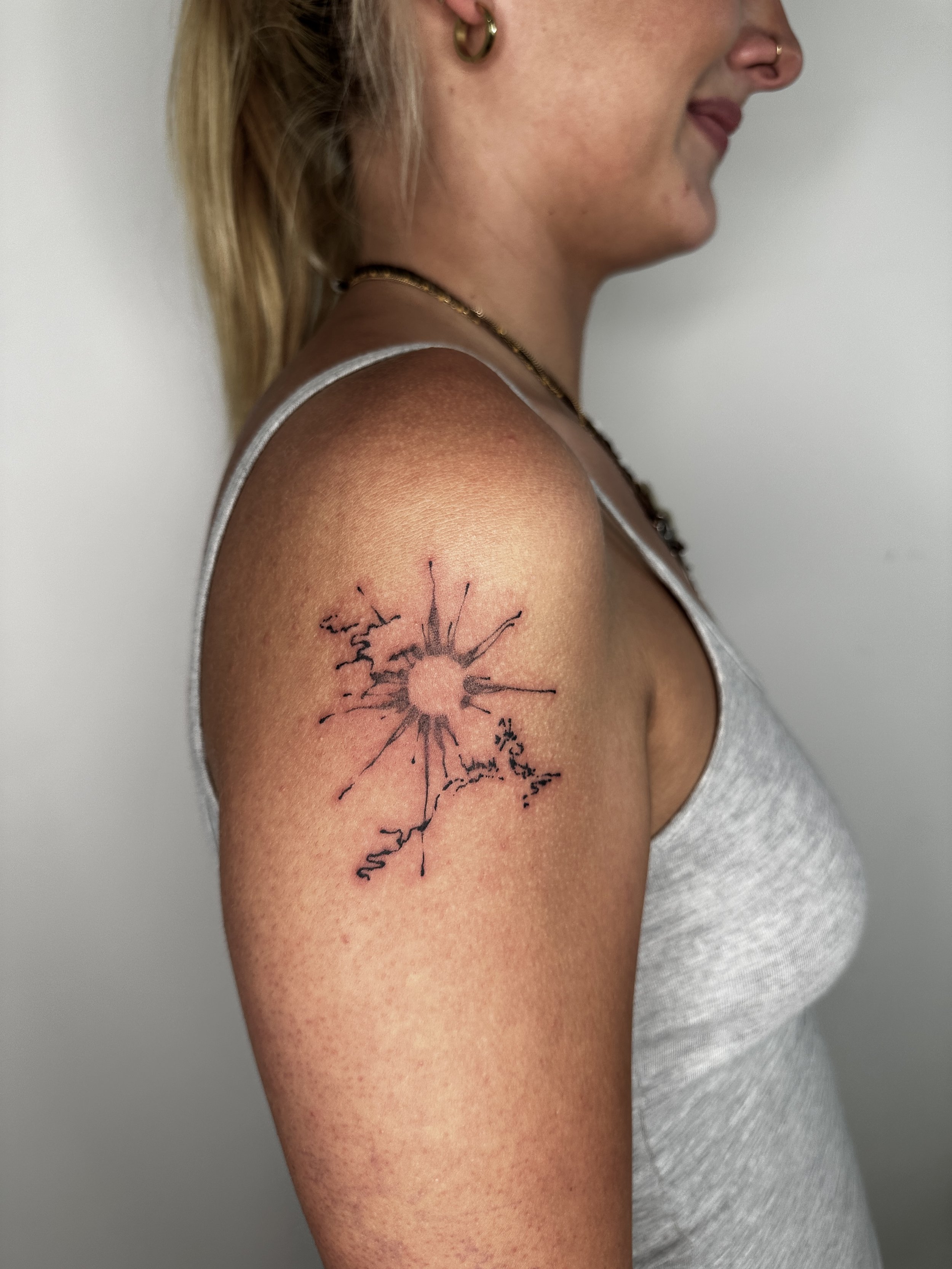 She specialises in fineline, illustrative, and blackwork tattoos, offering everything from one-of-a-kind custom pieces to flash designs she’s lovingly obsessed over. She’s especially drawn to big dreamy abstracts, quirky or badass animal pieces, botanical beauties, and anything delicate and detailed enough to make you lean in for a closer look.