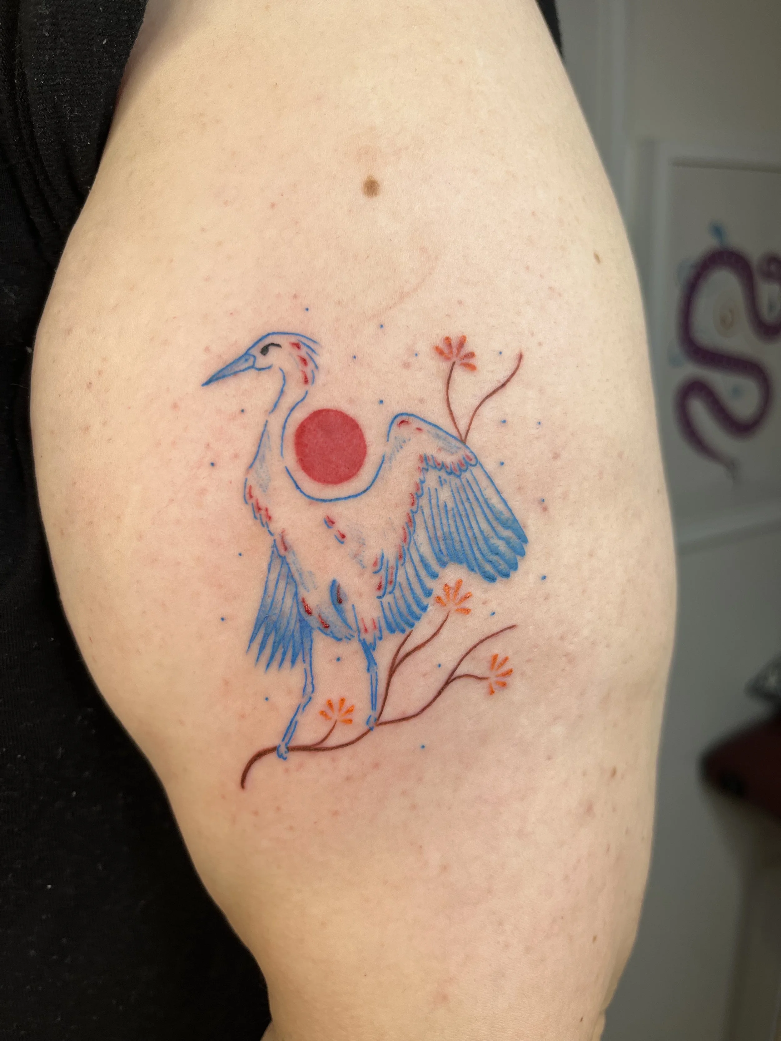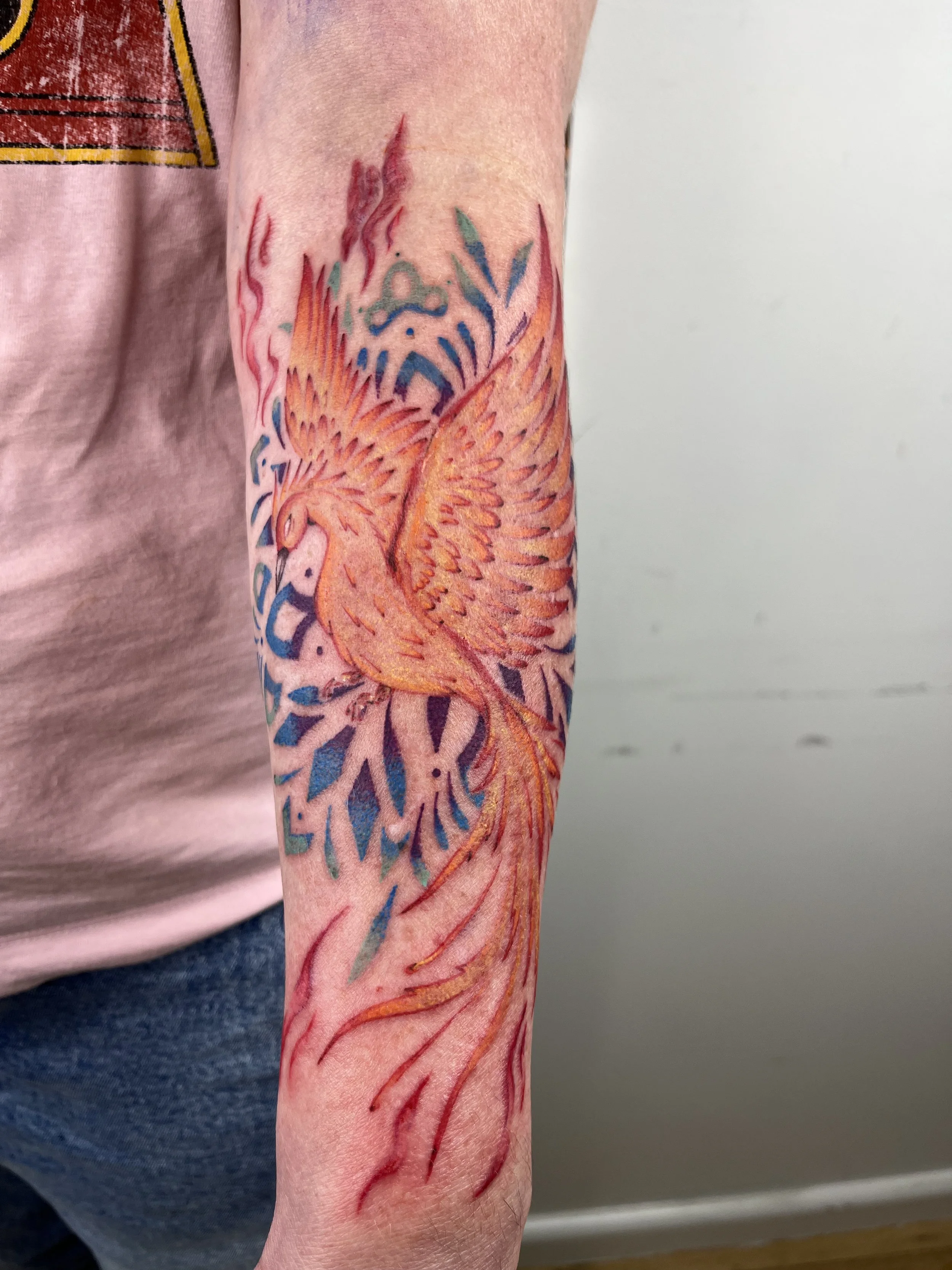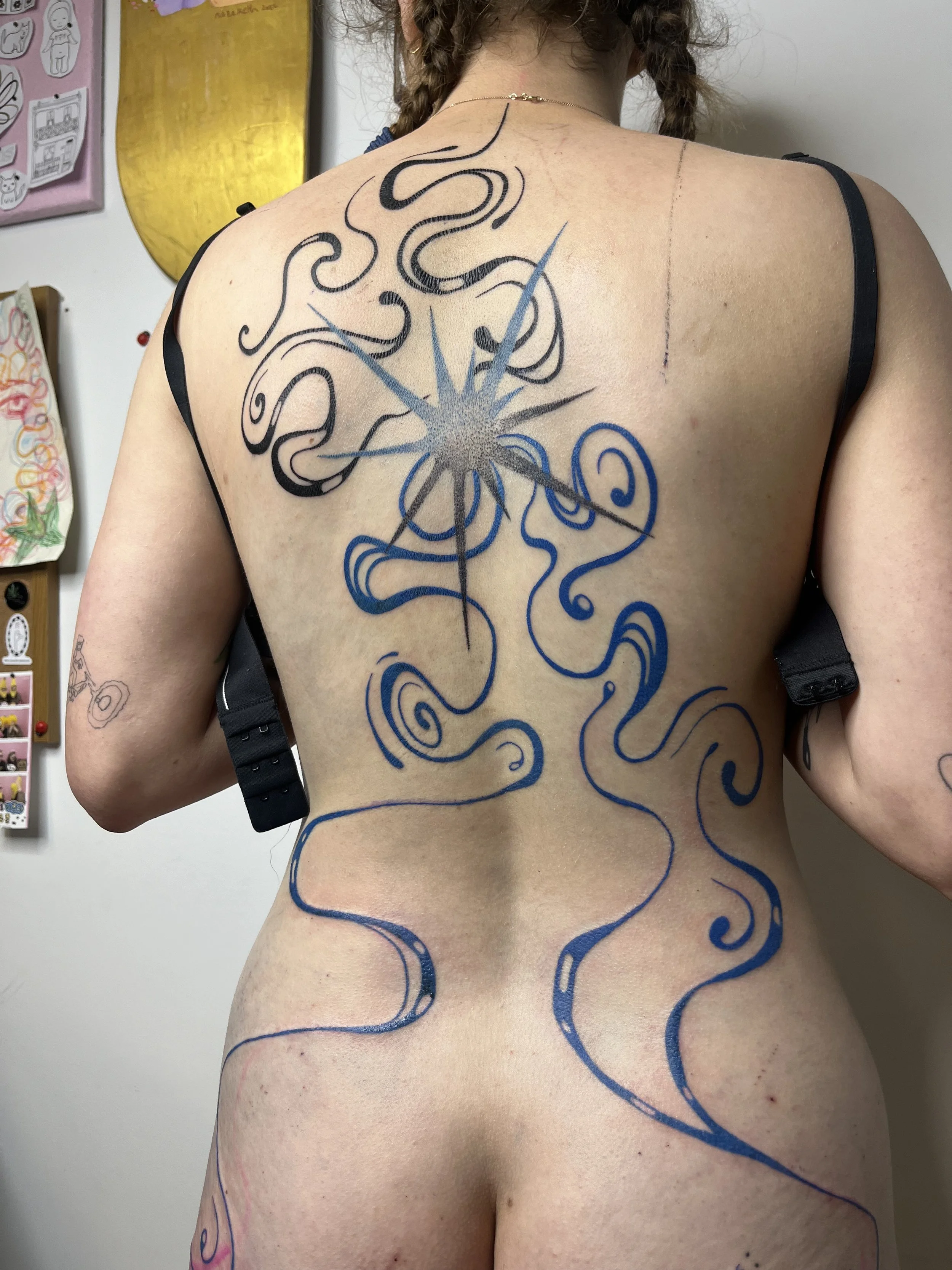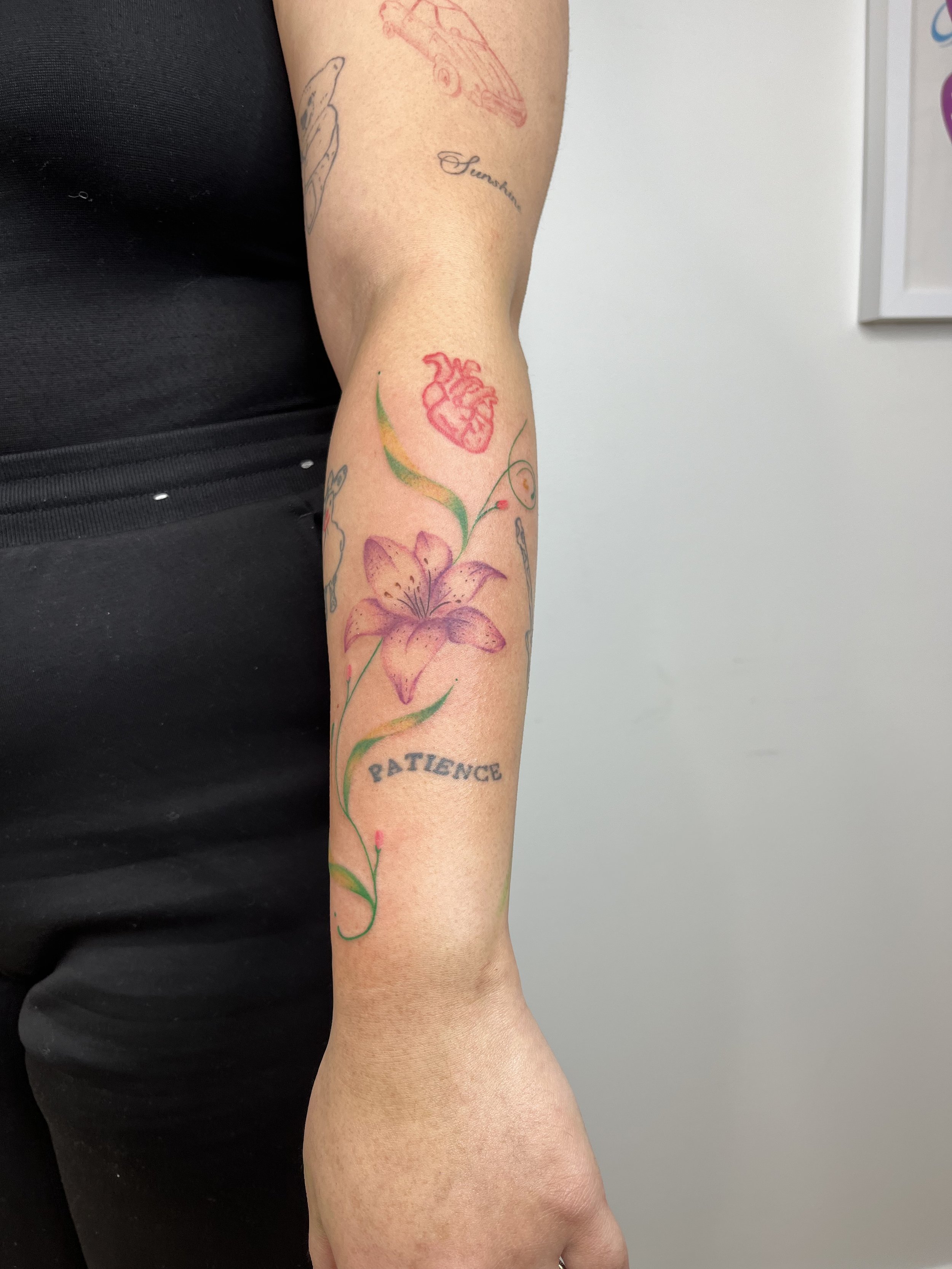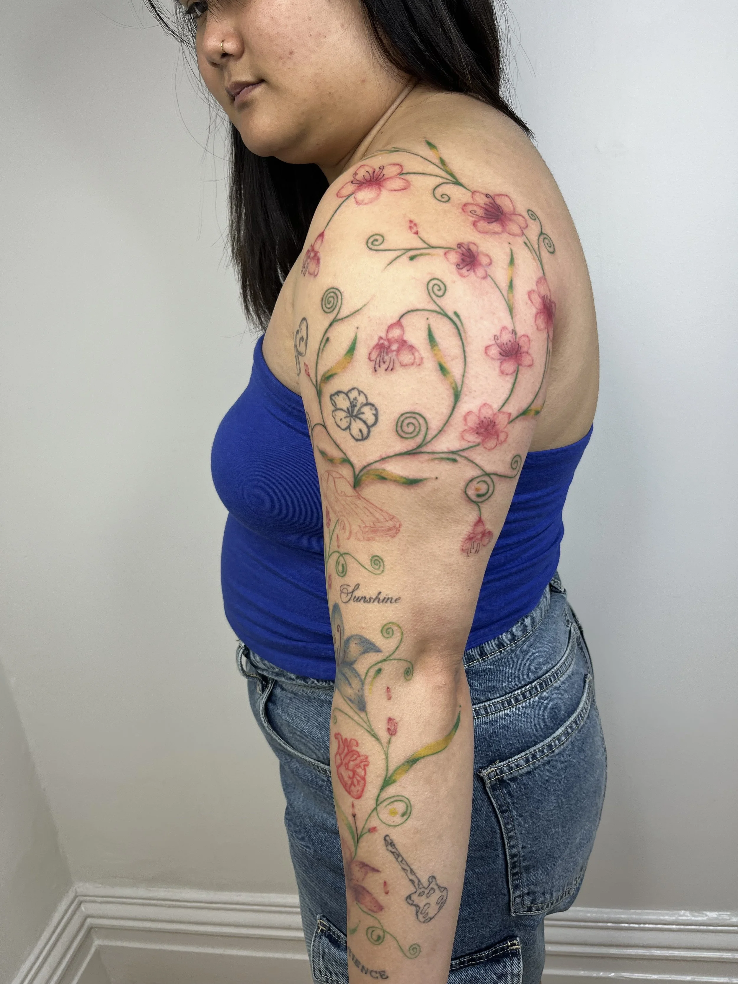 Her tattoo style blends fine line, colour, and pure youthful joy. Tiana loves co-creating with her clients, making sure every piece feels personal and sacred—whether it’s soft and sentimental, bold and expressive, or a tiny portal straight to your inner child. Helping people feel beautiful, confident, and at home in their skin is her favourite kind of magic.